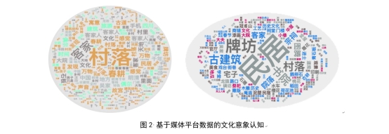 研究借助新媒体平台信息来关注具有集体记忆或者地方认同的物质文化形态和非物质文化形态,以及人们对遗产构建的定义或景观感知等方面内容,从而识别人们的对文化景观和历史遗产的共同定义。具体来说就是通过微博话题的文本数据来观察无差别对象对古村落文化感知情况和通过马蜂窝游记的标记和评价来做游客的针对性的文化信息收集,从众多用户对包括文化遗产、游览景观、城市生活等描述中获取关键性词汇,筛选出具有文化认知意义的词语并且认可这些名词的提及频率与公众对传统村落文化的偏好程度成正相关关系。